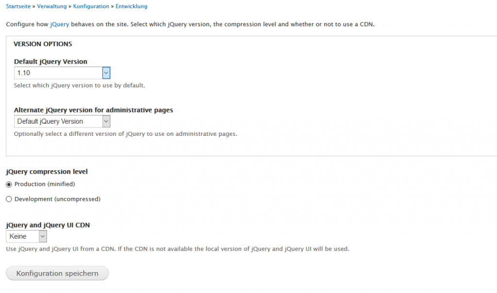 Folgende Einstellungen sind beim jQuery Update eingestellt siehe Bild.