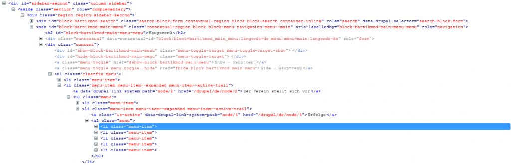 Unglücklicherweise finde ich dazu die betreffende Klasse nicht. Es gibt menu-item, menu-item--expanded menu-item--active-trail. Leider sind es keine der hier aufgelisteten.