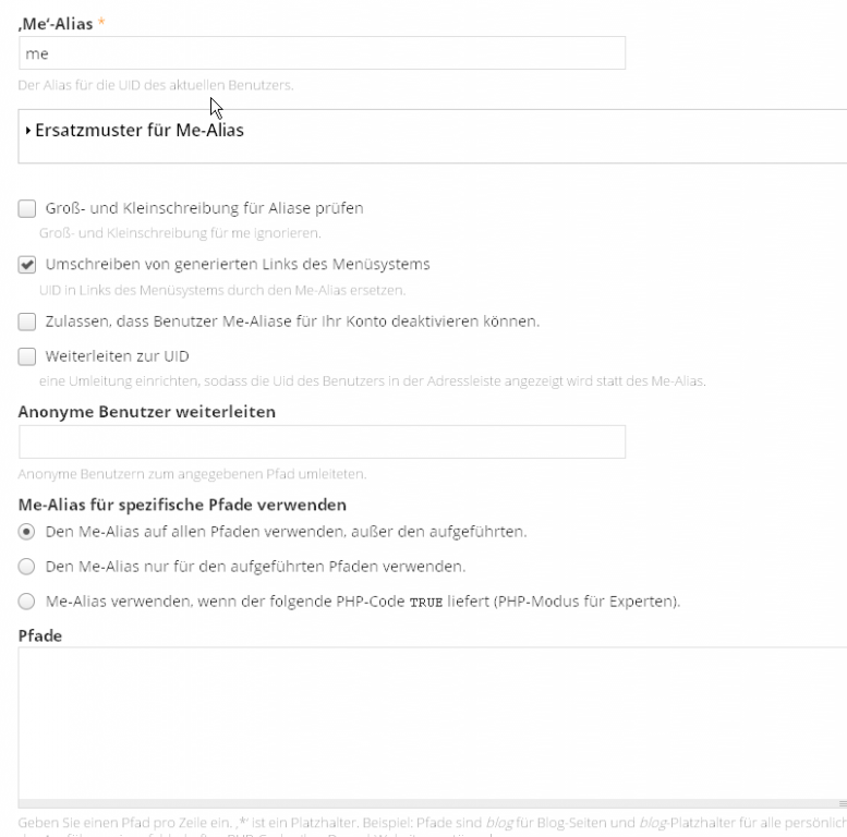 beim Drupalpfad: use/me und dies so abspeichern möchte, kommt immer folgende Fehlermeldung:
