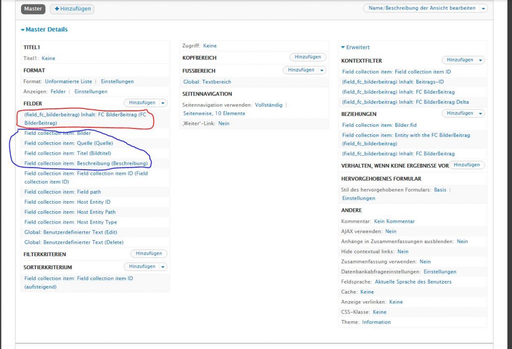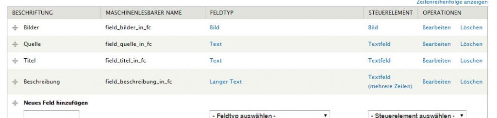 Die field collection ist teil eine Betrages und beinhaltet jeweils Bild, Bildquelle und Titel.