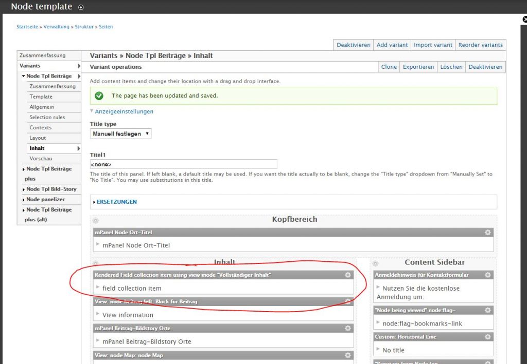 admin/structure/pages/nojs/operation/node_view/handlers/node_view_panel_context/content (3 Bild). Hier ist jetzt das ganze als Rendered Field collection item drin. das erschien mir dann die simpelste Variante. Aber auch hier nur immer der erste Beitrag.