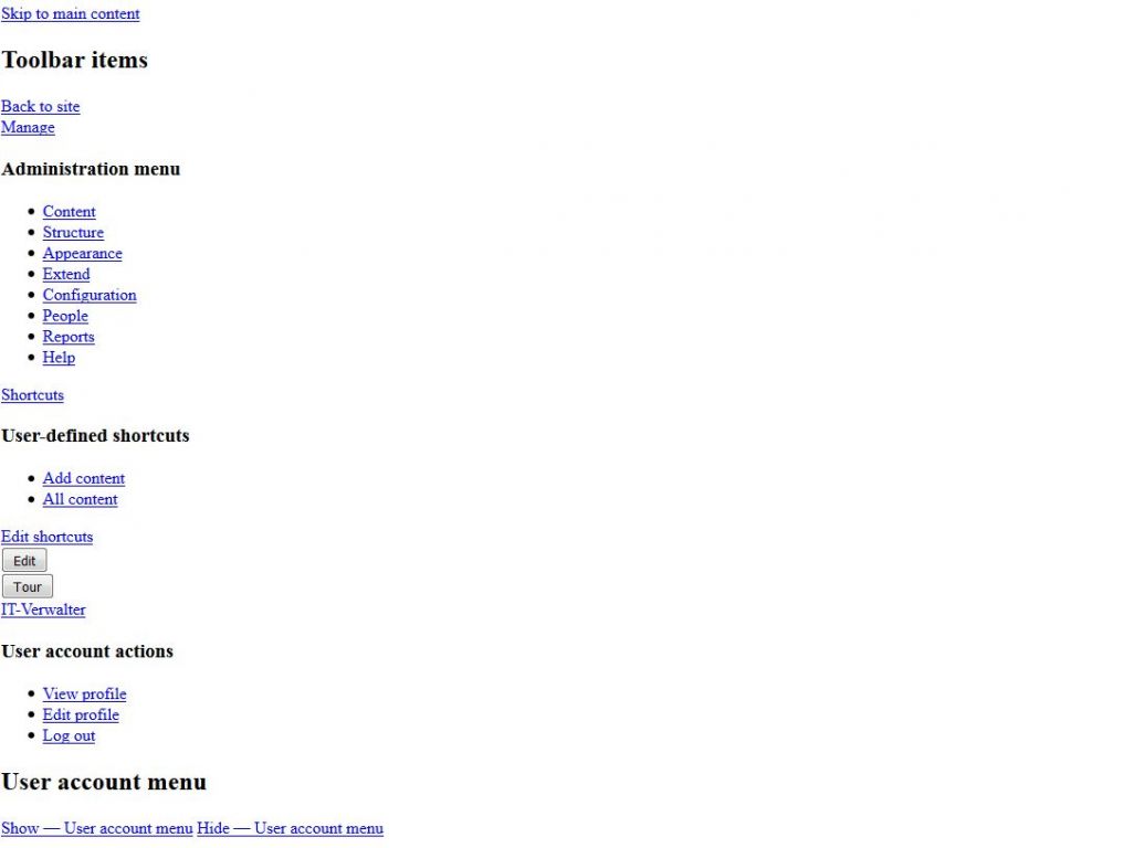 Ich habe auf einem Webspace bei DomainFactory Drupal 8 installiert. Mit dem Abschluß der Installationsroutine wurde die Webseite automatisch aufgerufen. Leider werden im Frontend jeglische Farben und Layout nicht angezeigt. (Verlinkungen sind aber da)
