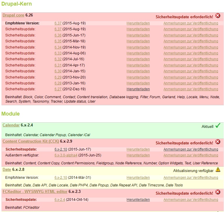 Innerhalb der Version Drupal 6 kann das funktionieren, muß es aber nicht. Deshalb sollte ein Update immer erst auf einem Testsystem ausprobiert werden. Für den Upgrade von Drupal 6 nach Drupal 7 braucht man dann doch Erfahrung, denn das ist meistens nicht trivial. Das kann zwischen einem Tag und mehr als 5 Tagen dauern und muß sorgfältig untersucht werden.