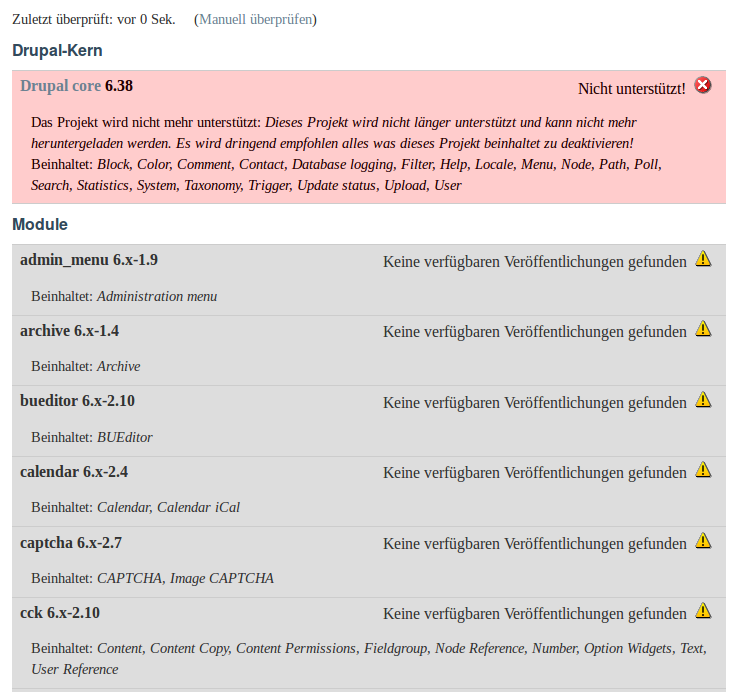 Nur weil der Drupal Core out of support ist, kann es doch für die/einige Module noch neue Versionen geben? Oder?