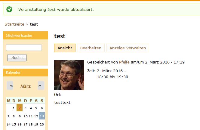 Auf meiner Site www.kirchenmusikliste.de können registrierte User eigene Veranstaltungen eintragen - und zwar mit Titel, Datum/Uhrzeit und Adresse.