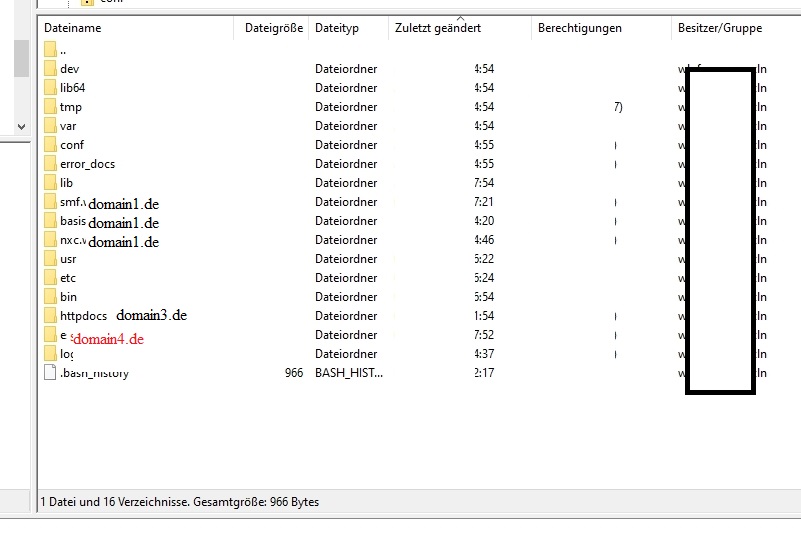 ist mir das leider auch nicht. Ich habe ja extra den Screenshot gemacht, weil ich eben auch nicht mehr Infos habe, wo genau der Pfad zu "domain4" ist. Jedenfalls nicht auf httpdocs, wie das sonst eigentlich der Fall ist - aber unter httpsdocs ist schon eine andere Drupal-Installation und dorthin führt auch ein anderes Verzeichnis...