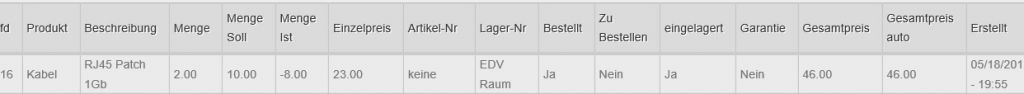 Ich habe eine View Tabelle erstellt (eine Art Lagerverwaltung).