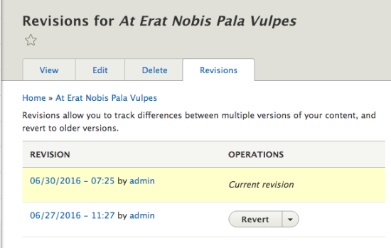 Sobald Du in der Konfiguration des Inhaltstypen die Option "Create new revision" gesetzt hast, wird beim Speichern eines Nodes dieses Typs eine neue Version erzeugt. Dann kannst Du beim Node im Tab "Revisions" sämtliche Änderungsdaten sehen.