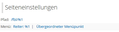 Wie krieg ich die Seiten jetzt aber ins Menü? Es soll ein festdefinierter Menüpunkt "FBL" im Hauptmenü erstellt werden und darunter sollen (nur!) die Elternbegriffe als einzelner Menüpunkt angezeigt werden.