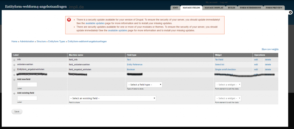 Und auch die Konfiguration des Entityforms (die Felder)