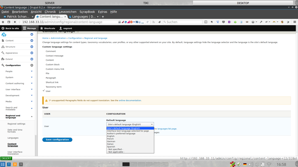 Drupal 8.2.2: Multilingualität: Anleitungen gesucht