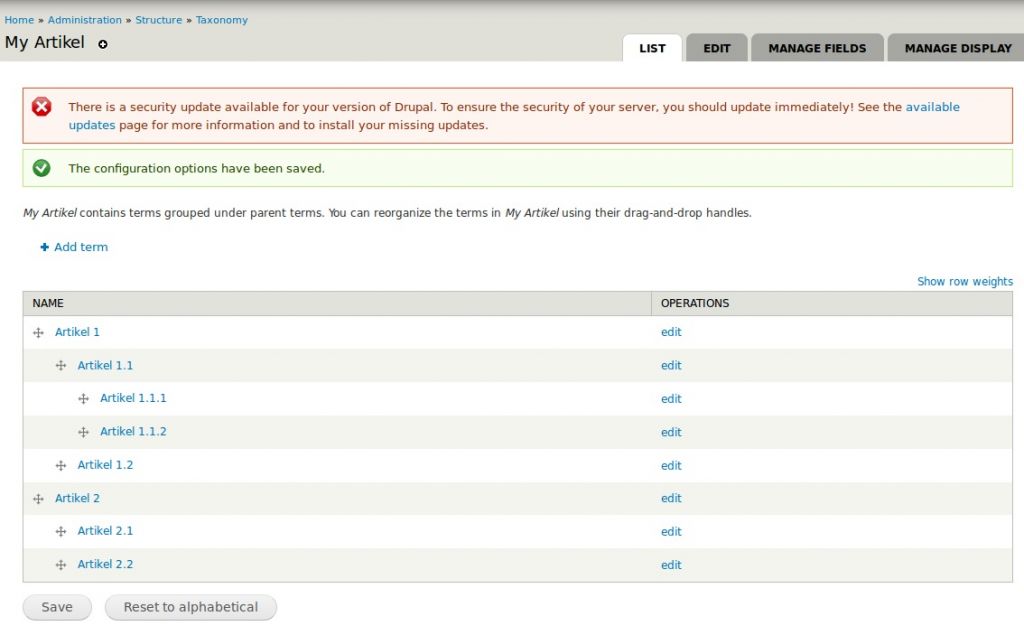 Hm, wo kann man das denn genau einstellen? Ich finde nichts... Und die Sortierung der Taxonomy wird ja auch in Views übernommen.