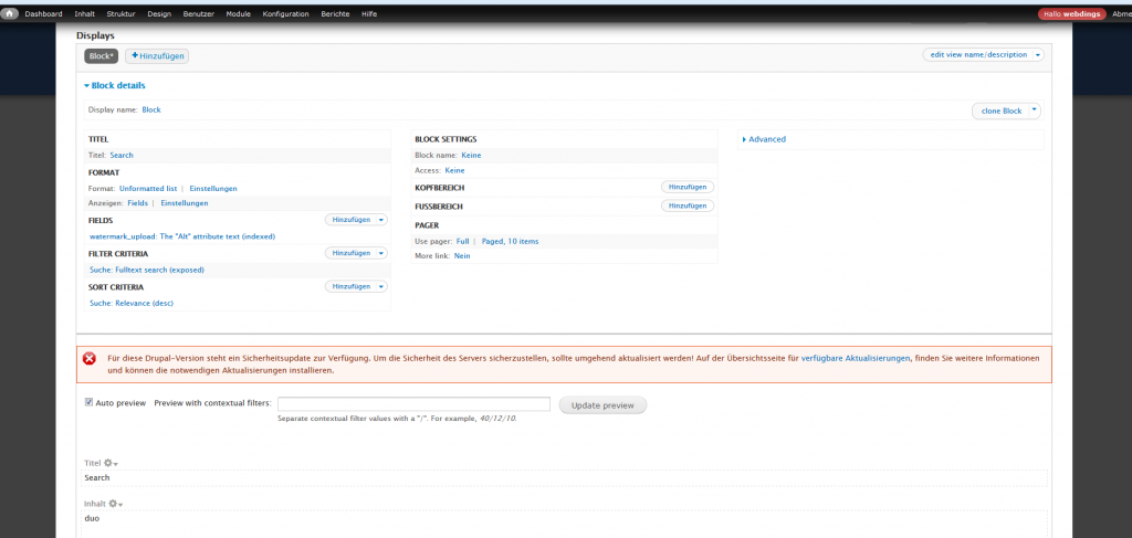 im View selber bekomme ich diese Fehlermeldung "SQLSTATE[42S02]: Base table or view not found: 1146 Table 'asfotowelt.search_api_index_bildsuche' doesn't exist"