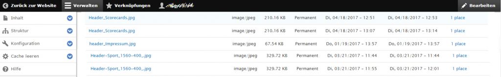 ich lade für Unter-Startseite A ein Headerbild hoch