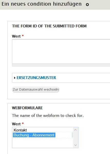 Als habe ich versucht die Bedingung : "Webformular hat den Namen" , das entsprechende Webformular auszuwählen.