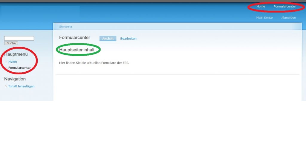 2) Geh ich dann auf meinen Menüpunkt "Formularcenter" steht noch im Anzeigebereich das Wort "Hauptseiteninhalt". Dies will ich auch weg bekommen.