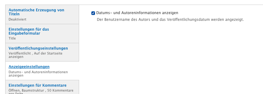 Was Du wie genau zeigst erschließt sich mir aus Deiner Fragestellung leider nicht, aber die Anzeige von Autor und Datum läßt sich in der Konfiguration des Inhaltstyps auschalten (Vertikal-Tab Anzeige-Einstellungen).