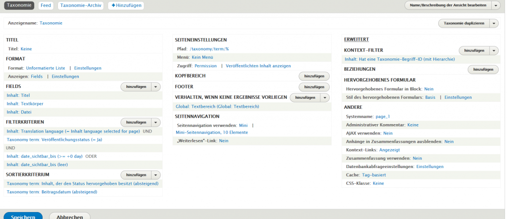 Taxonomiebegriffs für Views auf Startseite, besonderen Blogs etc.