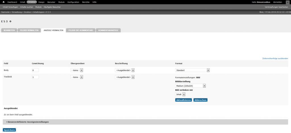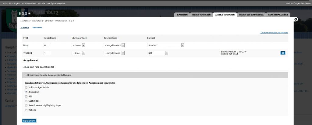Das Titelbild wird aber nicht angezeigt, nur die Überschrift. Unter Anzeige verwaltet steht "Es ist kein Feld ausgeblendet.".