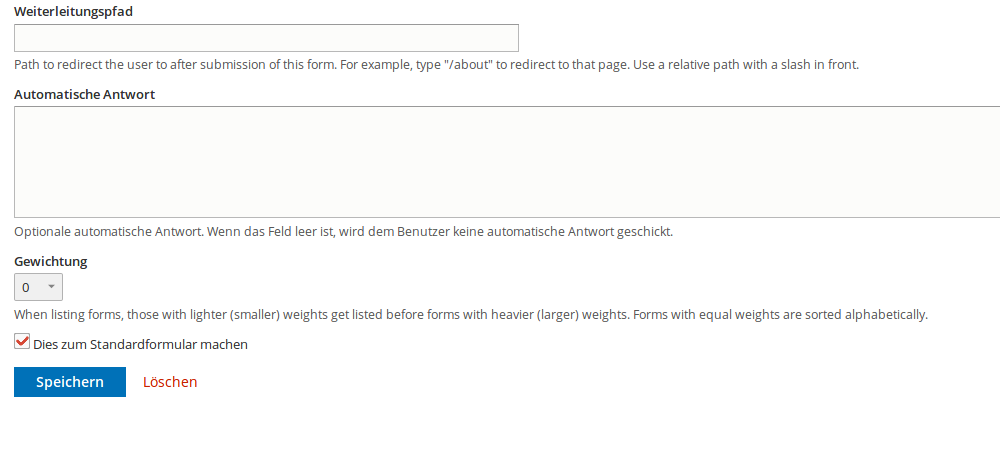 bei dir geht es weiter nach "Dies zum Standardformular machen" bei mir endet es da :( ?? Benutze die letzte Drupal Version 8.5.3! Und die Vorschau lässt sich auch als Gast sehen!