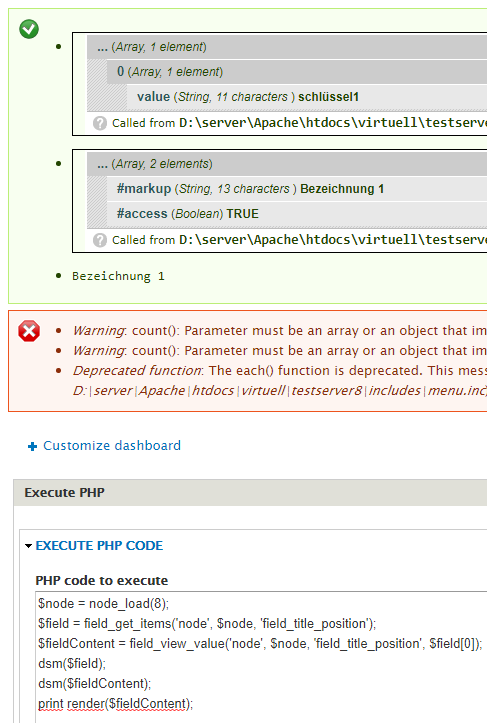 dsm($field[0]['value']);Beim Aufruf, wie oben beschrieben, mit field_view_value('node', $node, 'field_title_position', $field[0]['value'], wird jedoch der Schlüssel (String) wieder auf das erste Zeichen gekürzt.