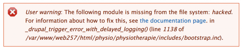 Habe gerade nochmal Updates durchgeführt und da kam die Fehlermeldung "The following module is missing from the file system: hacked ..." Hat das vielleicht was damit zu tun?Screenshot der Fehlermeldung im Anhang.