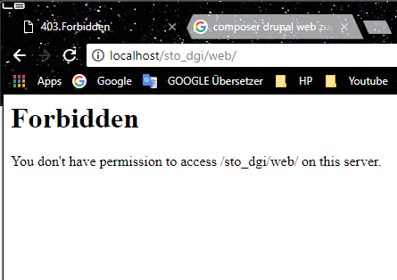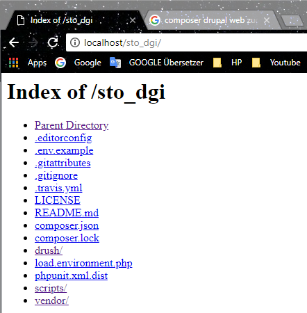 Leider wirt der Ordner im Brower (http://localhost/sto_dgi/) (Siehe Bild) nicht angezeigt, und so kann ich drupal nicht installieren.