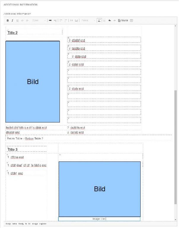 Ich habe auch die Funktion "Tabelle" im CKEditor aktiviert, um damit den Text und die Bilder besser zu strukturieren