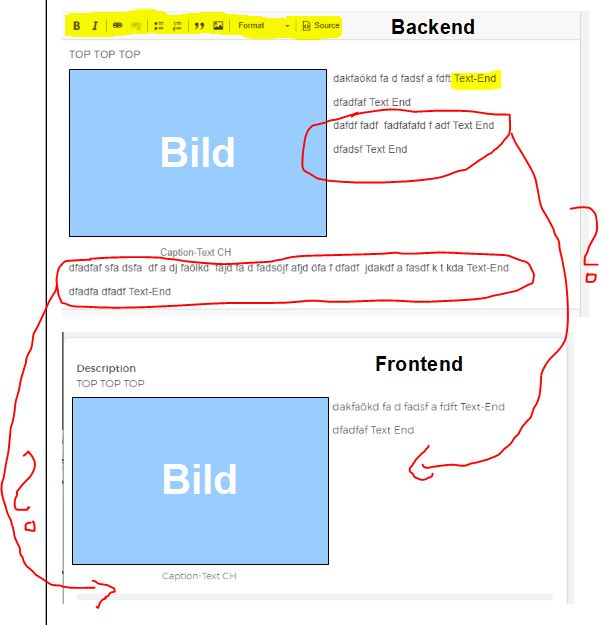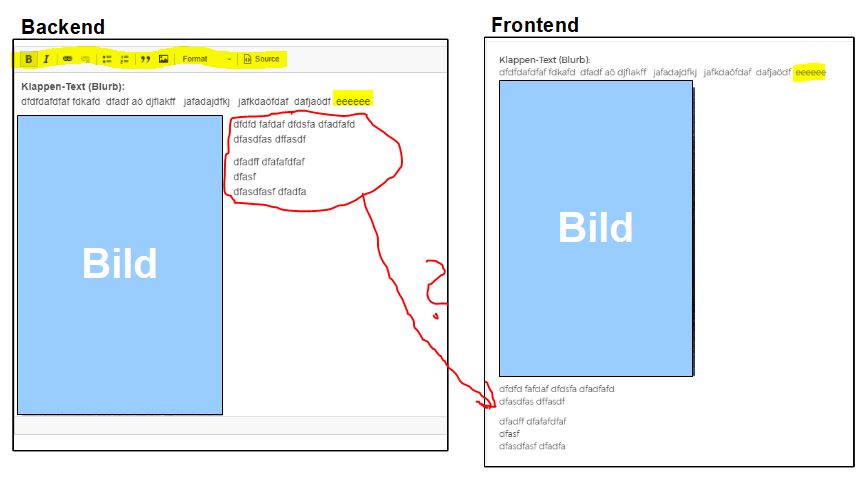 -> Der Text fließt im Frontend immer noch nicht um das Bild sowie im Backend definiert. Problem besteht weiter.