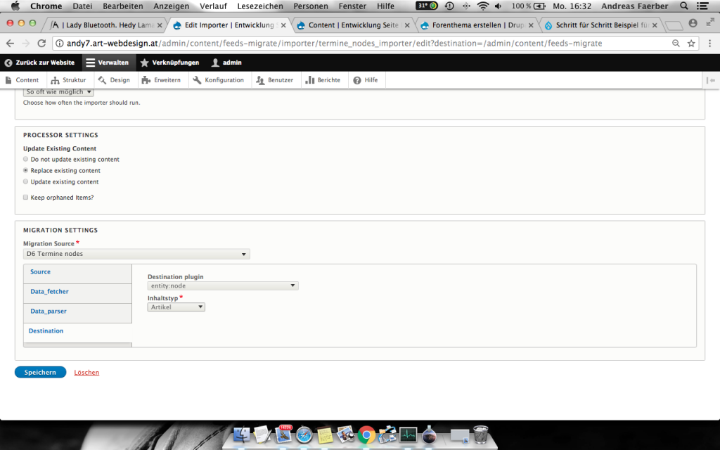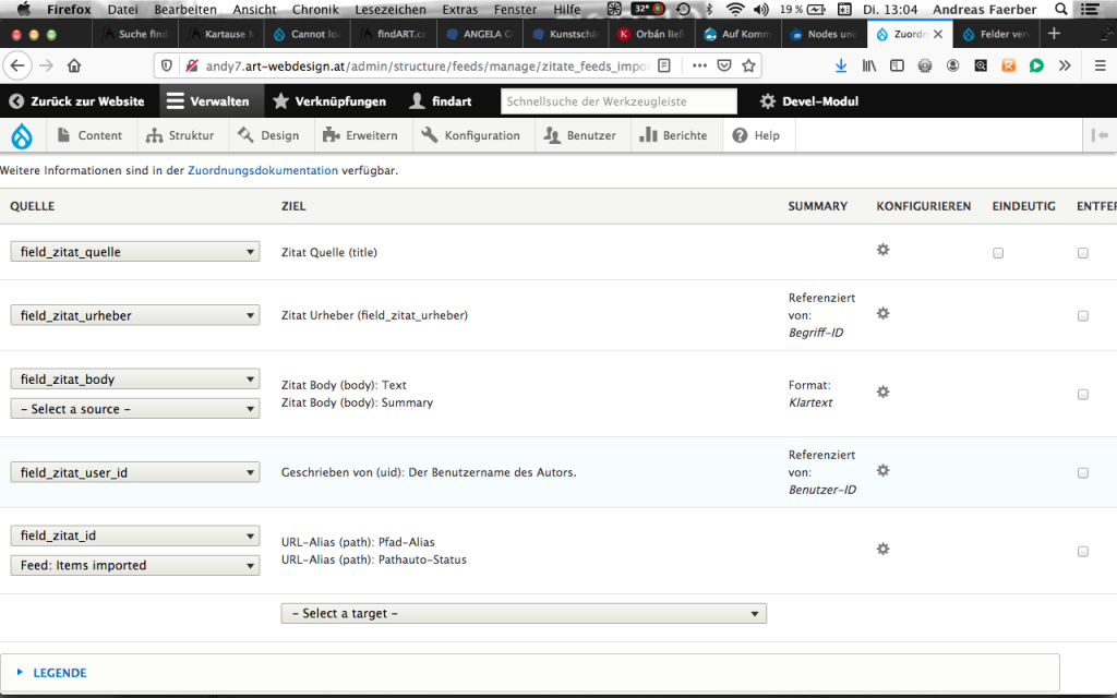 Habe nach deiner Anleitung den Import erstellt und JA es klappt, nur bei einem Punkt "Node-ID passend an und erzeugt den ALIAS analog" komme ich nicht ganz klar: wie lege ich das "temporäres Feld" beim Inhaltstype und wie bei der Zuordnung admin/structure/feeds/manage/