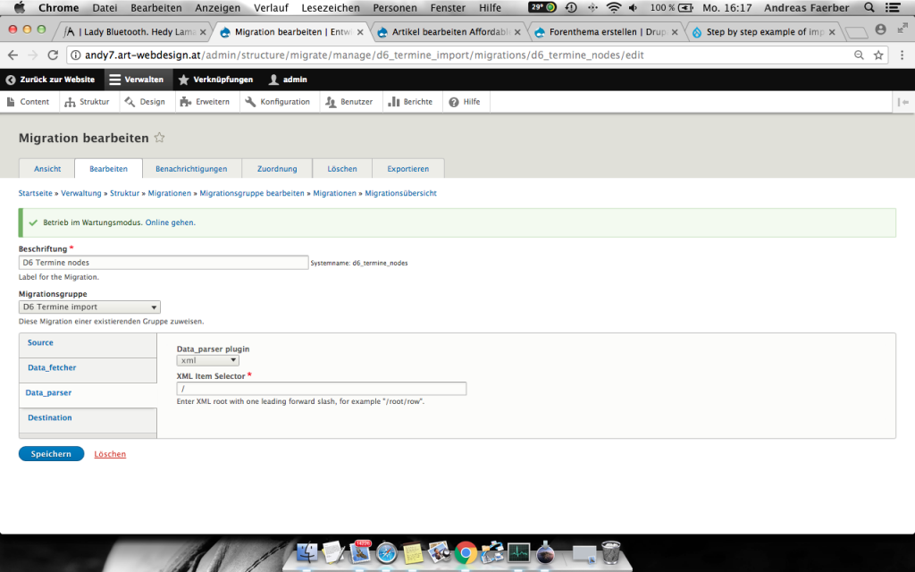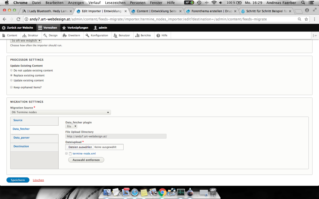 Die xml Datei habe ich im root bei der D6 Installation abgelegt: termine-node-muster.xml