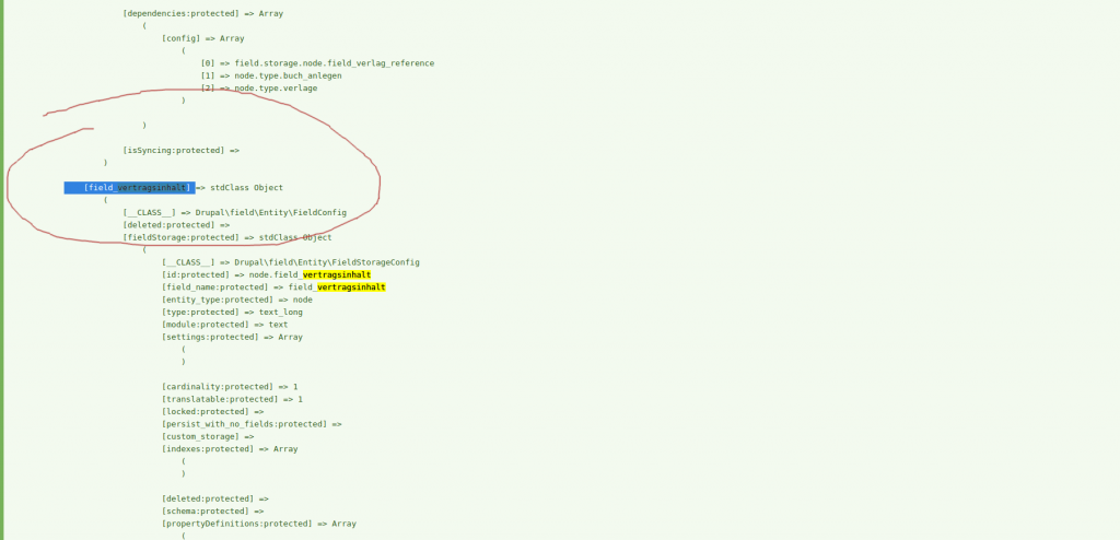 bin gerade dabei ein kleines Modul dazu zu basteln. Allerdings weiß ich nicht, wie ich mich an der bestimmten Stelle weiter durch das Array hangeln kann. Eigentlich will das Feld Vertragsinhalt schreiben. Wie komme ich denn an der Stelle s. Screenshot vorbeit?