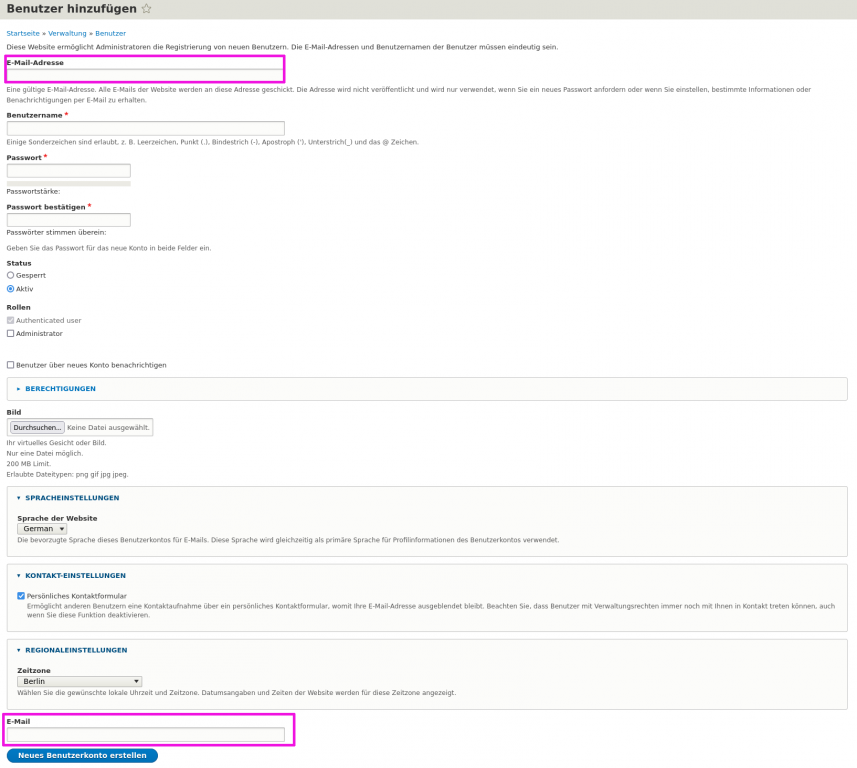 Benutzer hinzufügen, warum zwei E-Mailfelder?