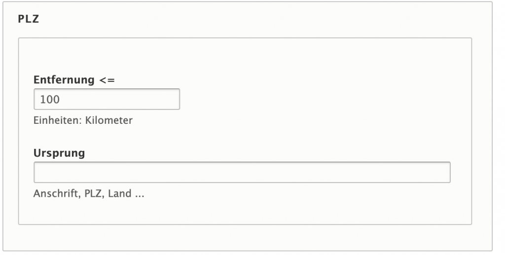 ich habe in einer Drupal 9 Installation eine View, die mit BEF und einem Filter "Nähe" nach Orten <= Entfernung filtert.