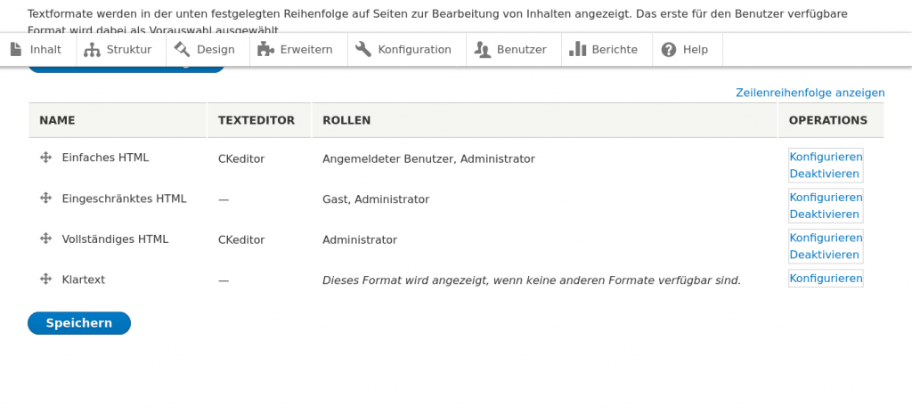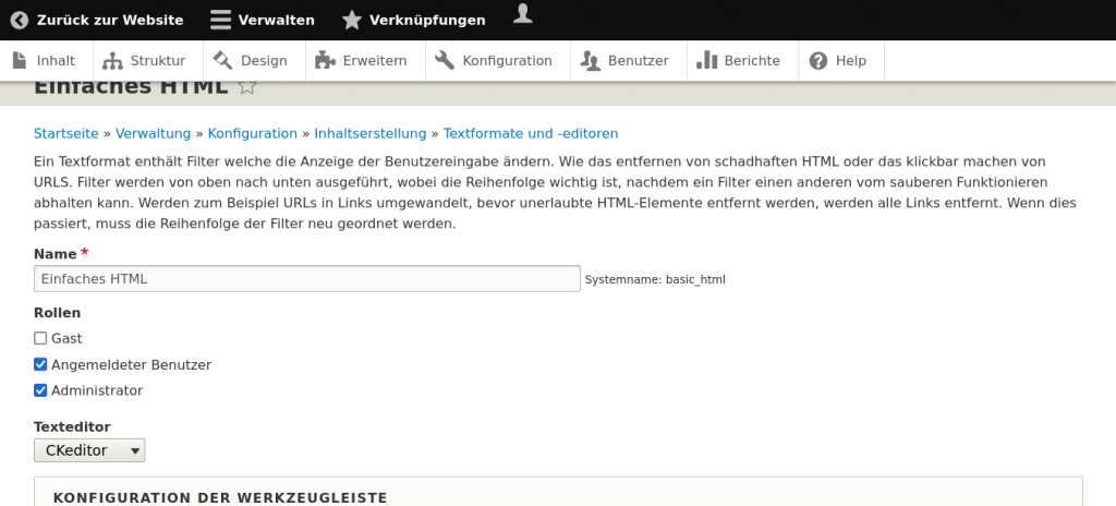 Bei mir sieht das so aus. Vollständiges HTML ist standardmäßig eingestellt.