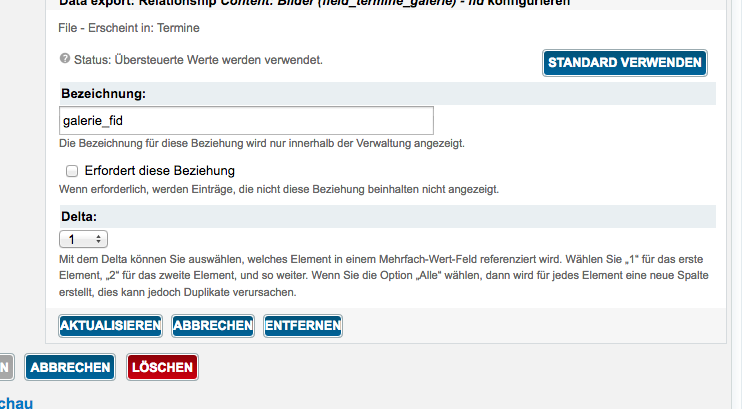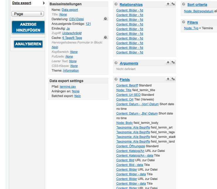 content_field_termine_galerie: Mit der NID bei der jeweiligen Node (Termine) habe ich die Zuordnung alles in eine CSV exportieren.