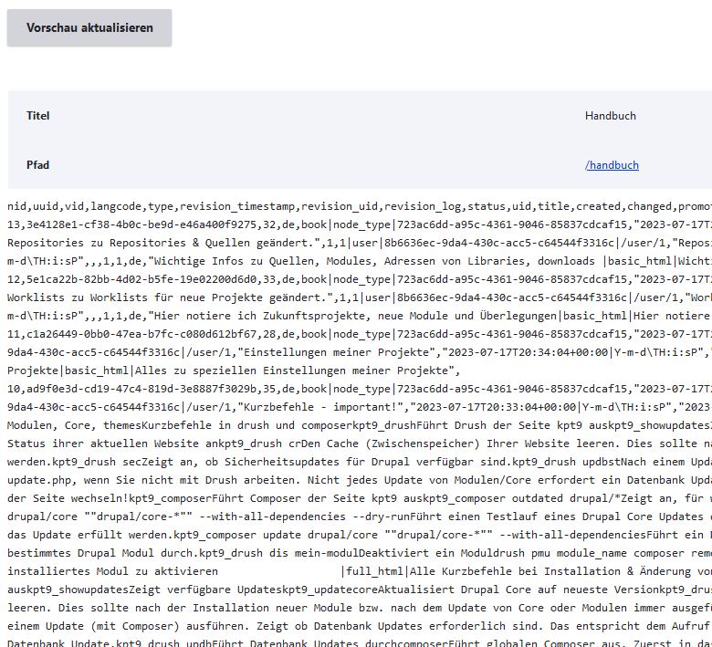 Konkretes Beispiel: Ich baue an einem Tutorial (mit dem "book" Modul) und möchte es dann später wo anders weiterverwenden können - ohne dass ich die Inhalte einzeln neu eingeben muss.