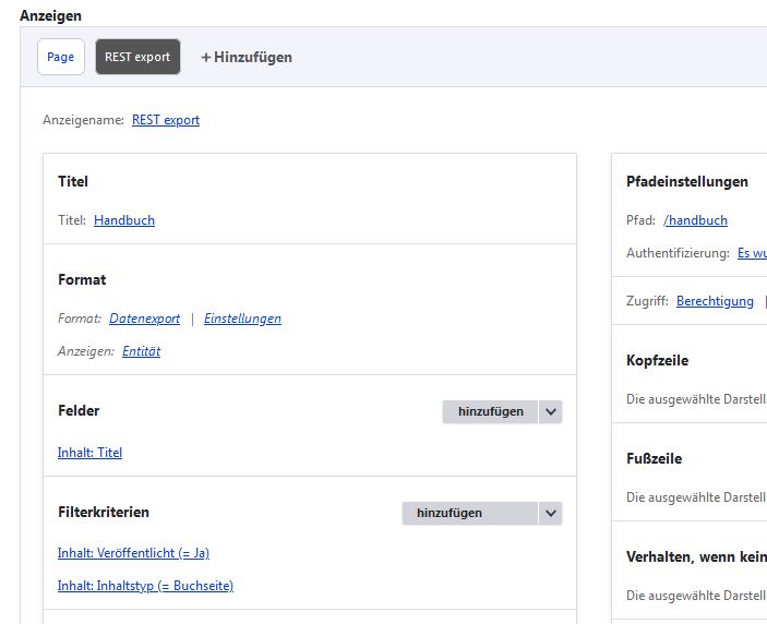 Unten habe ich zwei screenshots angehängt, wie die Struktur des view aussieht - bitte um Rückmeldung ob ich da das Richtige ausgewählt hab. Unklar war mir z.B., ob dabei "Inhalt" oder "Felder" eingetragen gehören.