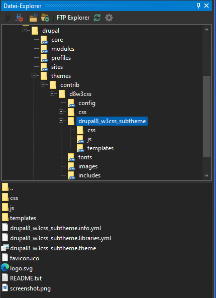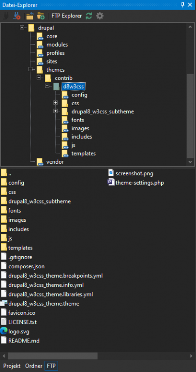 Die Ordner /drupal/themes/contrib/d8w3css/
