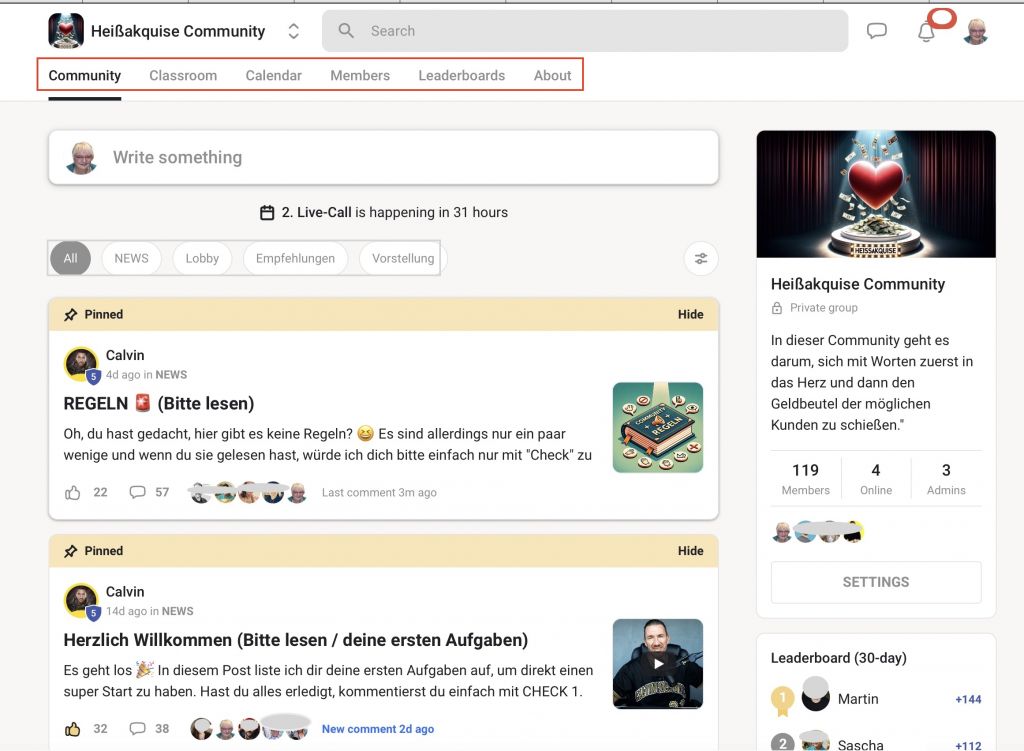 - Community: Man bildet eine Gemeinschaft zum Erfahrungsaustausch. (Der neue Trend. Nach einer Weile, wenn man sich kennengelernt hat und Vertrauen aufgebaut ist, kauft man bei demjenigen auch, z. B. Kurse)