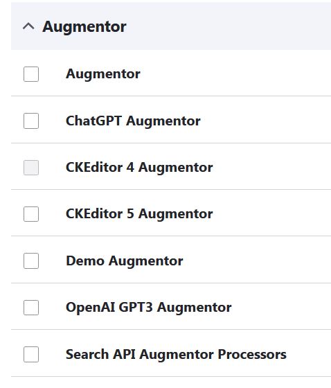 - Dazu braucht man ein spezifisches Teil wie z.B. "OpenAI GPT3 Augmentor oder ChatGPT Augmentor" um zum jeweiligen Anbieter eine Verbindung herzustellen - so hab ich das verstanden - stimmts? Gibts geeignetere?