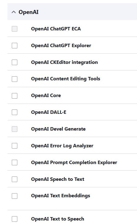 Es scheint mit dem von acqia vorgeschlagenen Modul: drupal/openai:^1.0@beta etwas einfacher zu sein. Ich berichte, wenn ich den key hab und damit starte.