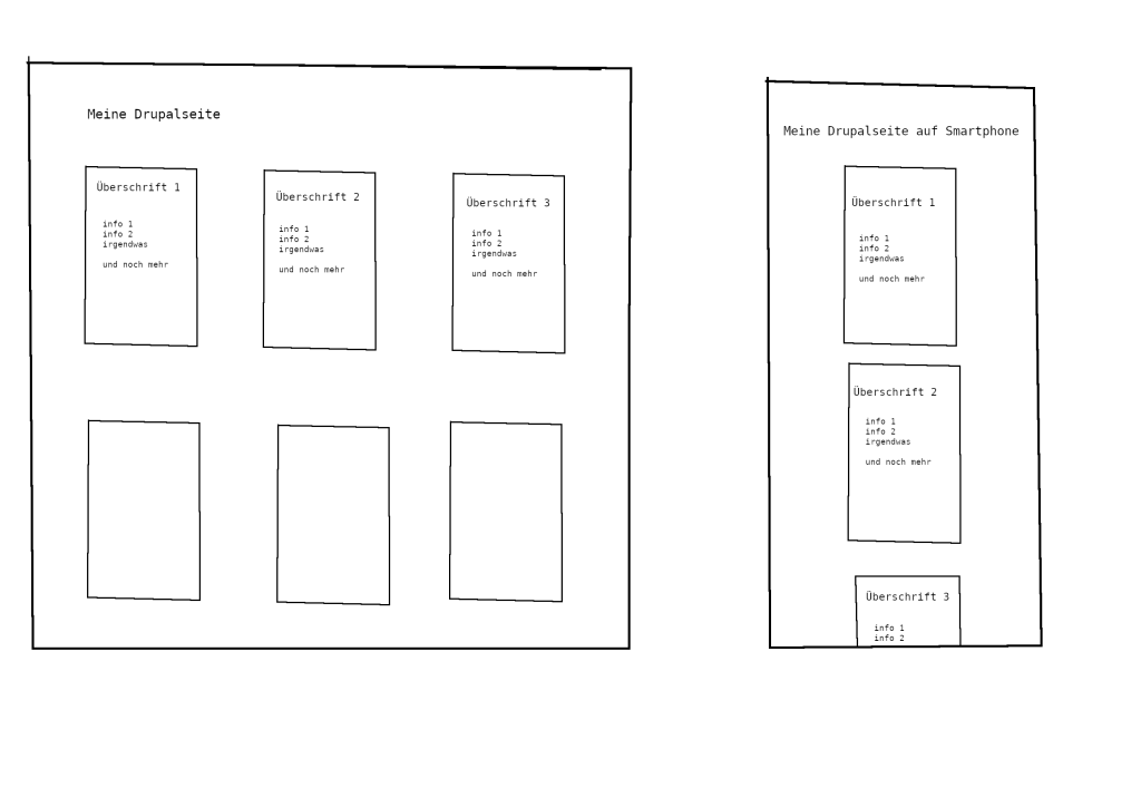 Ideal wäre, wenn diese einzelnen Blocke nebeneinander (vielleicht immer 3) wären und bei der Ansicht auf einem Smartphone untereinander rutschen. So wie in der Skizze im Anhang dargestellt.