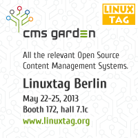 - Kommt uns dann am CMS-Garden-Stand (Halle 7.1, Stand 172) am LinuxTag Berlin (22.05. - 25.05.2013) besuchen